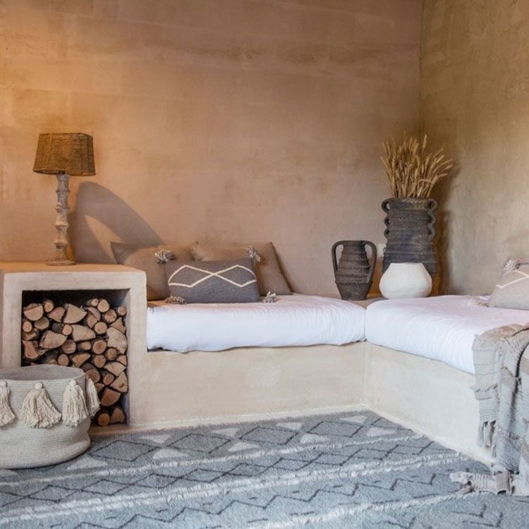 - De wollen vloerkleden van Lorena Canals worden aanbevolen voor kinderen ouder dan 3 jaar vanwege het verlies van pluis dat op kan treden doordat wol een natuurlijke vezel is.