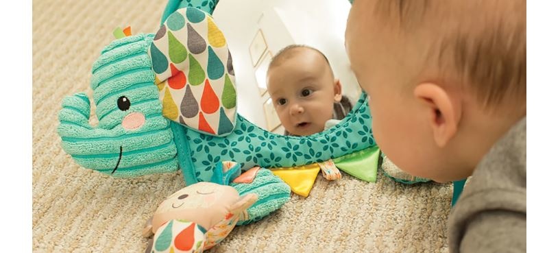 Dankzij de Activity Mirror in de vorm van een olifant leert je kindje zijn eigen reflectie en de wereld op een leuke manier kennen.