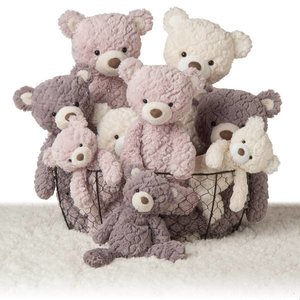 Bear in signature blush Putty super-soft etched fur. Elegant and modern plush with a classic design. Labeled machine wash, air dry.