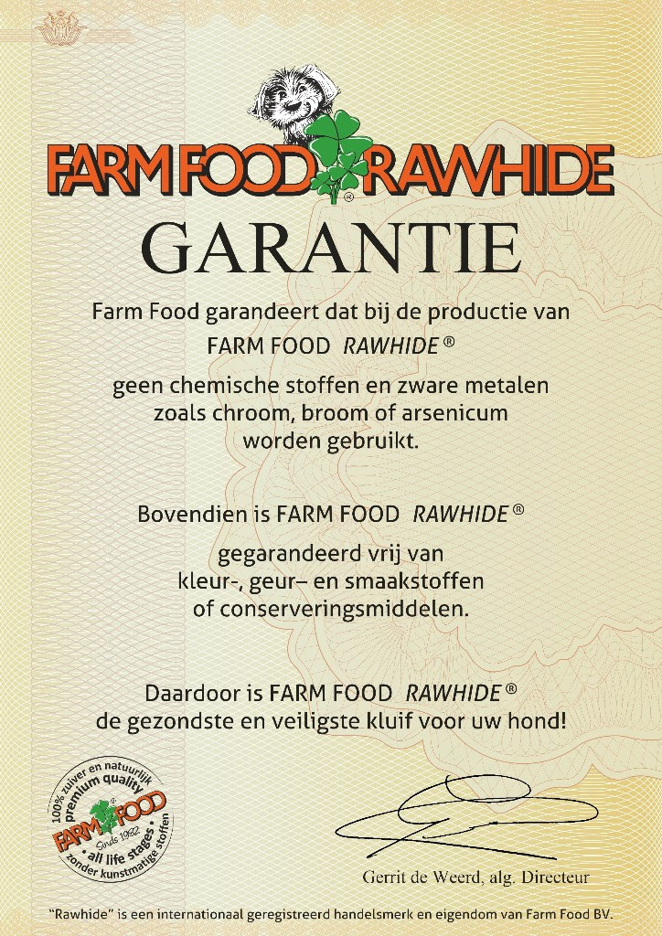 Farm Food Rawhide wordt in Europa onder HACCP richtlijnen vervaardigd.