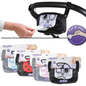 Handig reistasje voor onderweg van het merk Dooky. Dit tasje is voorzien van een pull & wipe systeem, zodat de doekjes en tissues binnen handbereik liggen.