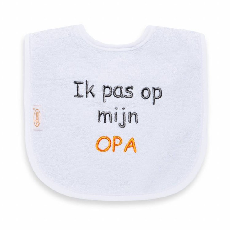 Katoenen slabbe met de tekst: Ik pas op mijn opa