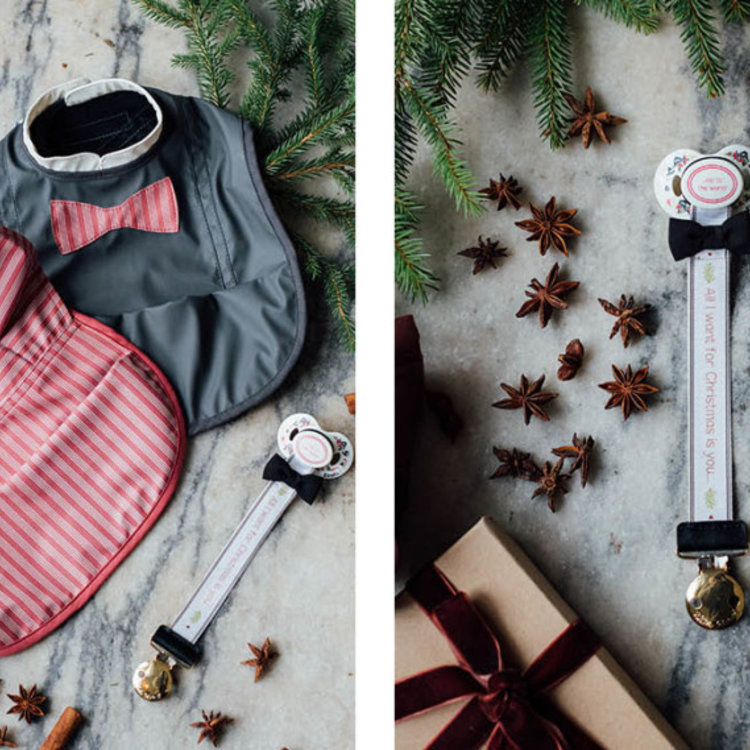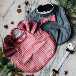 Deze gave waterdichte slab is gemaakt van waterdicht zacht materiaal. Hij is mooi donkerblauw met ee rood wit gestreepte strik, speciaal voor de feestdagen.