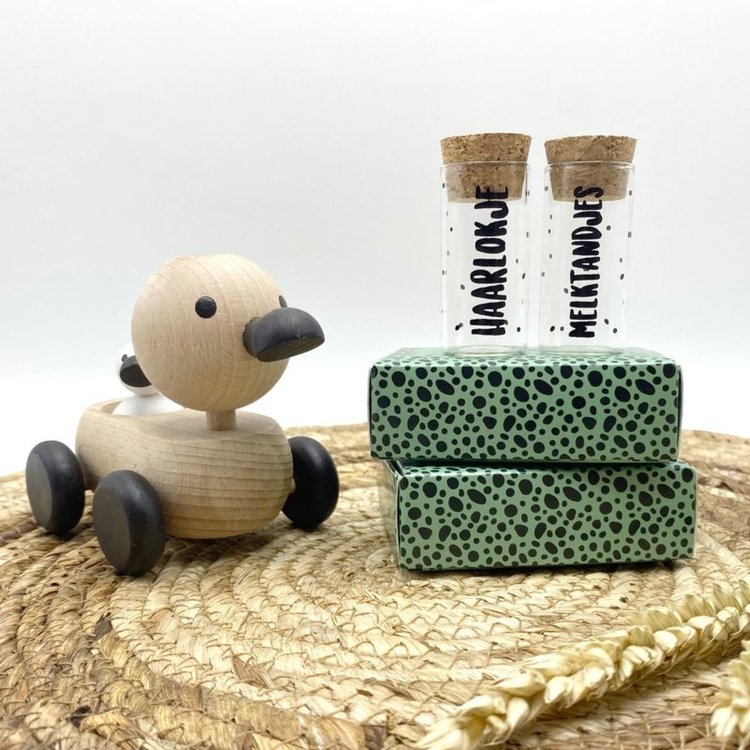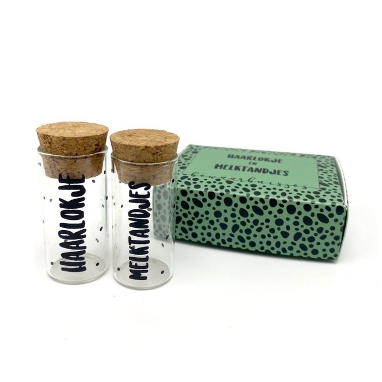 De hippe versie van de potjes om het eerste haarlokje en melktandjes in te bewaren. Een origineel cadeau om bij de geboorte te geven (of te versturen!) Maar natuurlijk ook erg leuk voor je eigen kindjes!