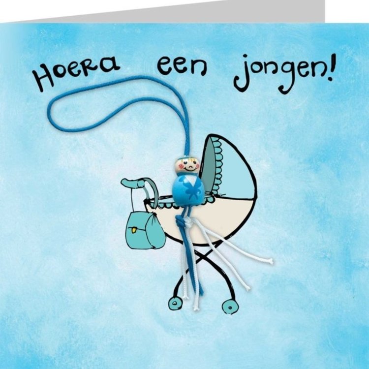 Bij deze kaart zit een gelukspoppetje van een baby, deze kan eenvoudig van de kaart worden afgehaald.