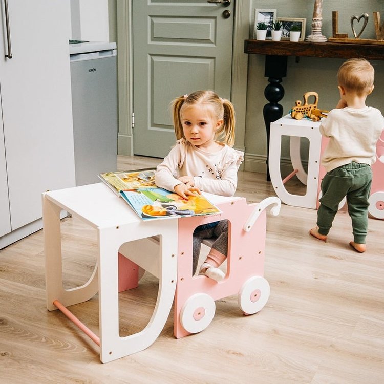 Deze Montessori keuken stap kruk kan gemakkelijk worden omgezet in tafel en stoel.