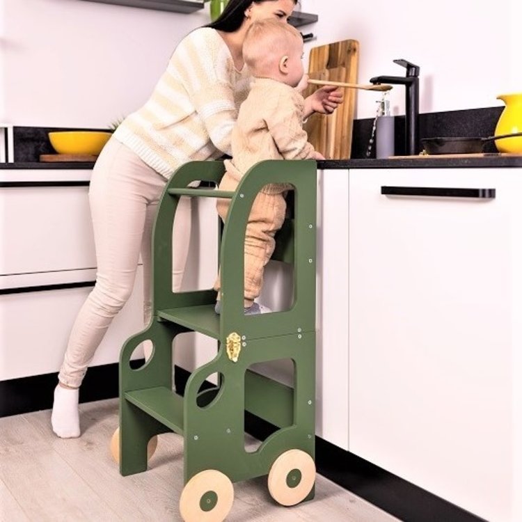 Keuken stapkruk - Stepstool voor peuter / tafel en kruk alles in een - naturel/Khaki CAR
