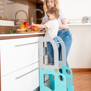 Deze Montessori keuken stap kruk kan gemakkelijk worden omgezet in tafel en stoel.