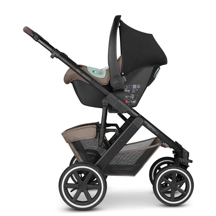 Niet alleen de bijbehorende reiswieg kan (naast het zitgedeelte) op het frame van de ABC Design Salsa 4 Air Kinderwagen worden bevestigd. Ook het ABC Design Hazel Autostoeltje kan gemakkelijk op het frame worden vastgemaakt. Deze combinatie is ideaal voor een snelle boodschap. Je hoeft je kindje niet wakker te maken en de reiswieg kan gewoon in de auto blijven liggen.
