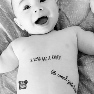 - 2 Identieke velletjes tijdelijke tattoo's om zwangerschap aan te kondigen in spiegelbeeld gedrukt